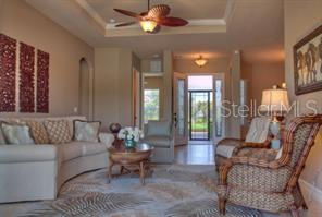River Strand turnkey furnished pool home. This home has one of the best views of the lake with the golf course view in the distance. Very upscale tastefully decorated home with all tile through out the living areas and carpet in the 3 bedrooms. Nice Open kitchen into family room for all of your entertaining needs. Over sized lanai for grilling and laying out. This homes does have amenity and golf transfer for $347.75 to use all of River Strand wonderful amenities.