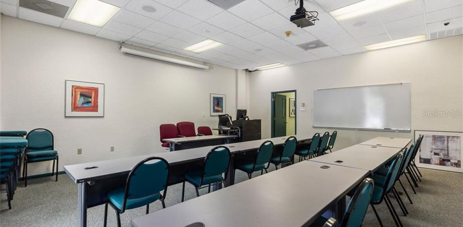 This lease space is in the heart of Sarasota at the corner of Honore and 17th which provides great exposure and ease of location right off I-75. This was the former home of Argosy University so there are multiple classrooms, a large library/auditorium/conference room that can easily accommodate 100+ office personnel, administration area, and approximately many executive offices. The building is substantially furnished with desks, computers, copiers, chairs, filing cabinets, overhead teaching projectors/teaching aids, and already has a fiber optics/tech room with back-up battery systems. This two story building can be split in several ways: the building can be taken as one space, or broken up over 2 floors or broken up into four spaces/suites. The building has a common reception area, an elevator, and common restrooms on each floor. There is plenty of parking with 180 spaces.
