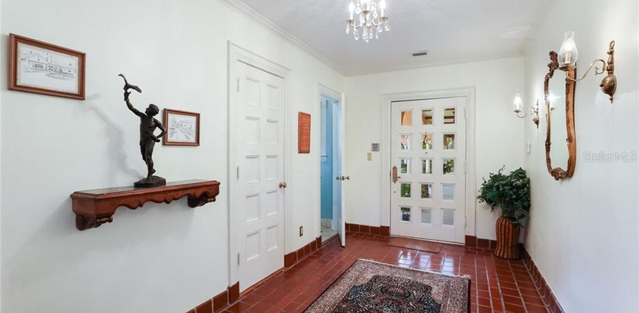Uniquely positioned on 1.8 Acres Villa Terra Mar Estate immediately welcomes you with a romantic Mediterranean design. This peaceful compound features a stately 1925 historic home with 3 spacious bedrooms and 3.5 baths. Enjoy the architectural bliss as you walk through the mature tropical foliage and past the gorgeous banyan trees, koi pond, paver walkways, and enter into the meditation labyrinth. The main house is separated from the cozy guesthouse by a large heated pool lined with royal palms trees giving it a Palm Beach vibe. The guest house includes a bedroom, living area & bath and features wood slat ceiling, heart of pine flooring, and a fireplace. Your guests have access to a private patio to dine outdoors and full access to the pool. The pool has recently been resurfaced and features a beautiful raised spa. The main house features original Saltillo terra cotta tile and hardwood flooring, wood-beamed vaulted ceilings & two fireplaces. The family room is spacious and boasts multiple sets of sliding and French doors on both sides of the room that lead out to the stunning outdoor space with multiple outdoor sitting areas to gaze at the lush old Florida landscaping. This historic home has kept the architectural integrity you would expect with crown molding, a marble fireplace in the formal living room, plantation shutters, and solid wood doors. The kitchen has a nice size island, solid wood cabinets, and a breakfast area ideal for sipping on your favorite tea or coffee while staring at the breathtaking views. The property has been well maintained and with 3 newer AC units and has been re-plumbed. The detached oversized garage features an 11x20 studio room plus a full bath. The vacant 1-acre lot on Dona Bay with 156 foot of frontage is available for sale as well. The vacant lot is bordered by a Sarasota County preserve on each side. Should a developer purchase for future land use the entire property allows for up to 9 units and is zoned multifamily. This estate is ideally located within close proximity to Venice Island shopping, and restaurants & beaches. If you are looking for privacy and complete tranquillity, you have found your new Florida retreat. There is nothing like this property on the West Coast of Florida!