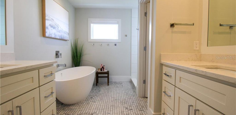 This newly built Luxury Rental Home on Longboat Key has everything for you and your family to enjoy your home away from home! This three-story 3-bedroom, 3-bath home boasts top of the line features, Smart Home technology, and beautiful décor throughout. As you walk the stone path to the front door, you will find beautifully manicured landscaping in every direction. This home has many luxury details including a gourmet kitchen which, is equipped with a wet bar and all WOLF appliances, SUBZERO refrigerator, wine cooler, Spanish porcelain tile floors, quartz countertops, 10' ceilings, custom PGT high impact doors and windows providing plenty of natural lighting and protection from the elements. The ground level features a custom-built queen murphy bed, a 60” Smart TV, and four comfortable chairs that overlook the stunning pool deck where you will find you and your family spending a lot of time relaxing and making memories. As you make your way to the second level, either by the elevator or the stairs, you are welcomed by an open and airy floor plan. To the right of the staircase is the main large living room that boasts a large plush “L” shape sofa, a cozy swivel day chair, and a 60” Smart TV. Next to the living room is the immaculate dining room, which brings a beautiful coastal element. The dining table can accommodate up to six comfortably. The living room and dining room share a wraparound balcony with views of the pool and all the lush landscaping surrounding this home. There is outdoor seating that can accommodate up to four comfortably and is the perfect place to enjoy your morning coffee. Adjacent to the dining room, you will find the state-of-the-art kitchen, which includes a Nespresso machine and coffee bean grinder for all the coffee lovers out there! As you make your way down the hall from you will find the first two bedrooms. The first bedroom has been designed for the kid at heart, with a tri-level twin bunk-bed and a 50” Smart TV and attached private bath. Next door you will find the second bedroom. This room boasts a queen-size bed, a 50” Smart TV, and a private bathroom and balcony. As you head to the top floor, you will find the master suite, which boasts a king-size bed, a 50” Smart TV, and a private deck with seating for two that overlooks the pool. This master bathroom is truly one of a kind, including two separate vanities, an enormous soaking tub, and a walk-in shower! Ready to head outside to your very own tropical oasis? This home has a large outdoor patio space, which is great for enjoying a BBQ with your loved ones. There is an outside dining table that can accommodate up to six comfortably. There is also a large outdoor couch that can seat up to six comfortably. Enjoy the day on the two swing hammocks that overlook the pool! The infinity pool includes two build-in chaise loungers and a hot tub for you to enjoy. One of the many features of this home to highlight is the innovative mosquito mister that lines the gates of this property. The system emits a mist throughout the day to help ensure no mosquitoes ruin your vacation! This home has everything you and your family will need to make memories that last a lifetime! With beach access only 0.2 miles from the home, this is the perfect location for your Longboat Key stay. Pool and spa heat available for an additional fee. Furry friends are welcome, small dogs ok 25 lbs max, no cats.