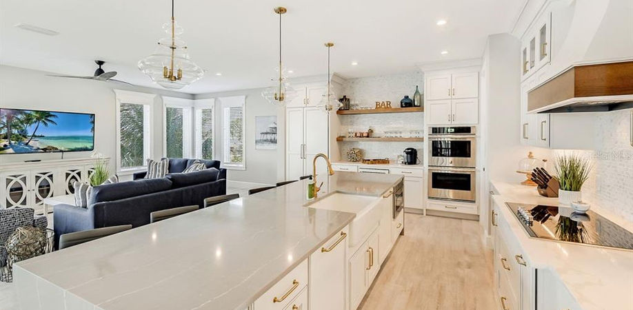 Under Construction. Brand new bayfront luxury home with amazing water views and only 3 blocks to the beach. This fabulous eight-bedroom dream home offers high-end finishes, professional décor’, and an abundance of room for entertaining. The first living level offers an open floorplan living, dining, and kitchen areas all with impressive water views, which opens up to an outdoor covered patio perfect for enjoying morning sunrises. The kitchen is fully equipped for every chef's dream with all the essentials including solid wood cabinets, quartz counters and high-end appliances. There is three ensuites on the main living level. Plus, 5 additional bedrooms on the second living level each with their own ensuite. The outdoor area offers a private backyard oasis that features a heated pool and spa, plus plenty of seating areas perfect for entertaining. Enjoy the roof top deck and the 360-degree panoramic views. The home offers a convenient elevator to all living levels. In this prime location, you are only a block from all the happenings on Bridge Street including shops, restaurants, putt-putt golf and more. Photos are of similar completed home to show similar décor and types of finishes. Photos will be updated once home is finished. Projected rental income for 2022 is around $500-$600K.