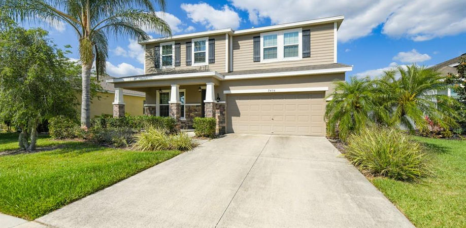 Fantastic 4BR, 3 Full Bath POOL HOME! Foyer entry invites you in to a formal dining room (or could easily be used as an office/study area), which leads into the butler’s pantry & then into a Gourmet kitchen that any chef would be proud to create the finest of cuisine. Miles of Granite counters throughout. High level crowned cabinetry, stainless steel appliances, & an additional breakfast nook area. Upgraded features include: Tray ceilings & crown molding and Plantation Shutters add to the luxurious atmosphere. 18” tile throughout the downstairs living area, except the 4th bedroom & dining room ~ both have high grade laminate. The 2nd level of the home introduces you to a 20x18 family/media room that separates a 25x18 master suite (with a library/nursery area) from the other large bedrooms & laundry area. You have not seen walk in closets until you see the 20x9 closet in the Master Bedroom! Master bath has double sinks, garden soaking tub & walk in shower. More than ample storage throughout this large home. Venture out to the enormous covered/screened lanai area with a 25x13 in ground pool and large pavered lanai. Two car garage, hurricane shutters if ever needed, and close to restaurants, shopping, banking, beaches, & easy access to I-75. This 54 home community even has its own Dog Park!