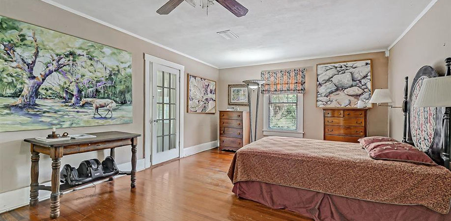 Grand Mediterranean Revival in Indian Beach with two single family parcels along the north shore of Sarasota Bay. A long, palm lined drive leads up to this classic residence and the first thing which greats you is a 40 foot long front porch. This is an idyllic spot to enjoy evening sea breezes and a private view of your landscape cascading down to Bay Shore Road. Everything about his place is classic. The large front door is framed by decorative side panels leading to a formal entry foyer at the base of a hand-crafted, two level staircase. To your right, a glass french door leads into a living room anchored by a wood burning fireplace bracketed by more french doors to the Florida room. Coffered ceilings, molding and base boards are dramatic original features. Another french door and an arched entryway lead to the formal dining room with collapsible glass doors allowing the party to spill out onto a rear patio shaded by ancient oak trees. Adjacent to the “eat in” kitchen is a den, which is reminiscent of a Ringling “speak easy” bar room with a half bath. This is a perfect spot for “prohibition era”, after dinner cocktails. Upstairs you’ll find a traditional floor plan with a large master and several smaller bedrooms all sharing two baths. The master, like the living room below, has multiple french doors leading to a sunny ante room with full southern exposure. The entire home is of masonry construction and has heart pine floors throughout. The AC systems (2) are new. Electrical service has been updated to 250 amp and the tile roof was replaced in 2002. There is an oversized, detached garage and a guest house with a large private patio. The front yard is so large it’s an additional parcel which can be subdivided for the construction of another residence.