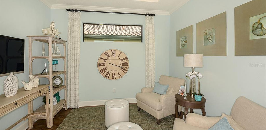 Pre-Construction. To be built. MLS# A4501153 Roma A by Taylor Morrison ~ Ready December!! From the moment you walk into the Roma, you are led into the heart of your new home. An open concept kitchen, dining, and gathering room with large windows flood the room with natural sunlight. The designer kitchen finished with stainless steel appliances and granite countertops overlooks the open concept gathering room and is joined adjacently by the dining room. Through sliding glass doors is a sun-soaked lanai, perfect for enjoying good weather and the famous Florida sunsets. From the gathering room, you are met with the peaceful Owner's retreat which notably includes a picturesque bay window along with a bath that boasts dual sinks, expansive shower and walk-in closet. Set privately in the other side of this home, you will find the cozy den and guest suite with full bath, walk-in laundry room, and 2-car garage. The Roma is a tranquil and beautifully appointed villa home. Structural Options added to 10410 Ingelnook Terrace include: Pocket Doors in Study, 8 Ft Interior Doors, Pre-plumb Laundry Sink. REPRESENTATIVE PHOTOS ADDED