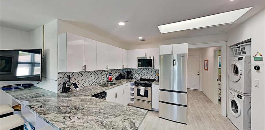 2) Use it as two 2-bedrooms 2-bathrooms units with 2 separated entrances. An opportunity to rent one out and live in the other. Occasionally, it has been rented out as 4 bedrooms and 4 bathrooms. It is managed by TurnKey Management and is exceeding revenue expectations. The property went through a major gut renovation lasting for more than a year. it is as good as a brand new. New mini-split A/C, plumbing, new electric Panel, new hot water heater, new deck and patio. There are two recreation or game rooms on the ground floor, one for each of the 2 units. ( Please see description under the pictures) The attached garage is also separated into two, with one garage for each of the units. Custom gourmet kitchens with stainless steel appliances. Brand new W/D in both units. Enclosed private fenced patio with hot tub, gas grills & beautiful landscaping. Security System. HAVE IT ALL WITH THE BRAND NEW FURNISHINGS. The owner is a lic. Real Estate Agent.