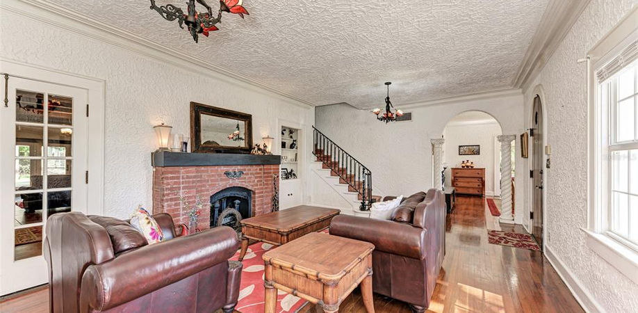 HUGE PRICE REDUCTION!!! This remarkable historic Mediterranean Revival home is a highlight of the quiet Palma Sola Park neighborhood. Edwin Barnes, business partner to Thomas Edison, built and lived in this period home in 1925. The adjacent road, Senrab Drive was named after Barnes, but with the spelling reversed! This was the first house to be built on Palma Sola Boulevard and still retains many charming original features, and has been well maintained to accommodate modern living. Spacious inside and out, this beautiful, two-story 6 bedroom, 5.5 bath home sits on over half an acre of well maintained grounds. Recent updates include new tile roof, A/C, water heater, plumbing, patio doors, electrical, en-suite bathroom upgrade, new paint and landscaping. The original hardwood floors, archways, pillars, balconies, wood burning fireplace, crown molding, exquisite stained glass windows and wood beam ceilings let you step back in time! This home is perfect for entertaining guests - upon entering there is a formal living room with fireplace, decorative pillars and dining room. This leads through to the family room and additional billiard/games room which includes the antique billiards table. An en-suite downstairs bedroom has direct access to the patio and pool. The front facing sunroom is currently used as an artists studio/office with large windows running along both exterior walls capturing perfect light and ambience. Upstairs, the breathtaking en suite Master bedroom has wood beam vaulted ceilings and a majestic peacock arched stain glass window over looking the pool area and rear gardens. Step out of the side door from the bedroom onto the large roof top sun terrace - perfect for relaxing with extensive views over Palma Sola Bay. Three more generously sized bedrooms, and 2 bathrooms complete the second floor. The sun-bathed pool area is spectacular with a large patio and has a built in outdoor bar. The charming kitchen has stained glass cabinet fronts and stunning stained glass windows overlooking the pool area and the boulevard. The guest cottage/mother in law suite offers one bedroom, one bathroom with shower and an eat in kitchen area. This could also be used as a separate home office. Large fenced back yard with mature landscaping, mango and orange trees and spacious storage shed and goldfish pond. A truly wonderful location with scenic Palma Sola Causeway and Rose Park fishing pier are just a short walk away. Anna Maria Island and downtown Bradenton are within 10-minute drives to the west and east, respectively. This very special property is perfect for lovers of historic homes with beautiful architectural details and the character of yesteryear - truly a unique and stylish work of art! And if you join the Palma Sola Bay Yacht Club for $200 per year, you are eligible to rent a boat slip in the basin for only $1200 per year. Call today for your private viewing.
