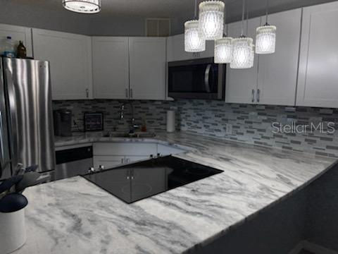 Make an appointment to see this 2 bedroom, 2 bath condo at The Wave! This 887 square foot unit has an updated & renovated kitchen featuring an extended granite breakfast bar, backsplash, new cabinets, new appliances and is very functional. You will enjoy the updated bathrooms. The main bathroom features a walk-in shower and updated fixtures. Other updates include laminated flooring throughout the unit, newer hot water heater, keyless entry and an abundance of thought that went into the new paint colors. The community has fitness center, community pool with grill stations, on site laundry facility. The Wave is a lifestyle community conveniently located to beaches, entertainment & sports, airports, Tampa, and the famous downtown St. Pete area. Call your Realtor and make an appointment today.