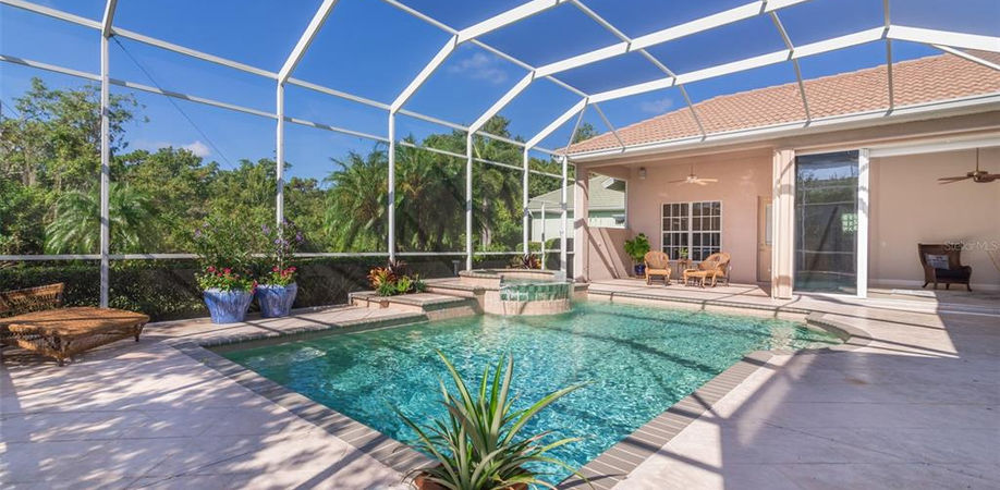 Experience the gracious living in Warwick Gardens in the distinguished gated golf community of University Park Country Club. The paver drive leads to an oversized three-car garage with an expansive walk-in storage closet. As you enter through the glass front doors, the disappearing sliders in the living room showcase one of the two covered lanais and ultraprivate pool and preserve view. Gorgeous crown molding and tray ceilings feature prominently in this one-owner home. The chef's kitchen boasts solid wood cabinets, under-cabinet LED lighting, two dishwashers, bar and wine refrigerators, gas stovetop, center island with sink, two wall ovens, large walk-in pantry, breakfast bar, pass-through to the formal dining room with its built-in sideboard and an aquarium window in the breakfast nook overlooking the solar heated pool and spa. The split floor plan sequesters the owner's retreat and luxurious bath with dual sinks, vanity, shower and large soaking tub, two separate, custom walk-in closets from the three guest rooms and two baths, offering privacy for all. No house is complete without a study with plantation shutters and a guest half-bath. Thoughtfully designed and carefully maintained, a home for Florida living. The country club boasts 27 holes of golf, 11 lighted Har-Tru tennis courts, a fitness center and proposed pickleball courts. Only social membership is required.