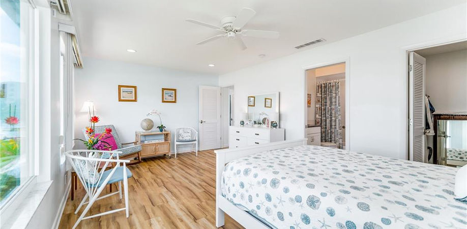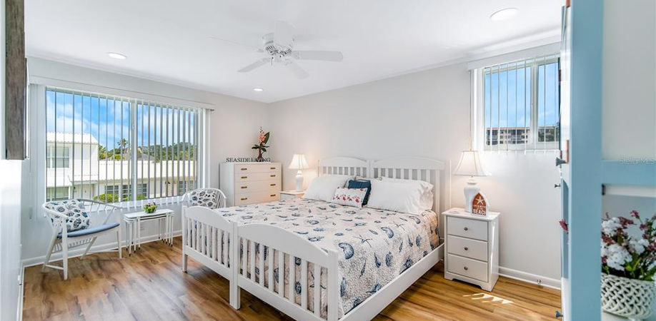 Bestowing island vibes and the laid-back lifestyle expected on Siesta Key, this beautifully renovated Beachaven townhouse is the ideal retreat. Improved to perfection, every detail represents high-end quality while reflecting coastal influences. Stunning new flooring graces both levels, the neutral color palette correlates with any style choice, and broad windows provide an abundance of natural light throughout the home. The galley kitchen is well-equipped with lovely dark blue quartz countertops and white solid wood cabinetry that match the master en-suite bath. Upstairs, two generously sized bedrooms offer incredible vantage points of the grounds and plenty of space to rest after exploring Siesta Village. This exceptional residence is in proximity to the heated pool and clubhouse on the broad private beach that has inspired the tropical essence of the home. Take the trolley or ride a bike to the Village for a sweet treat, refreshing beverage, or browsing the boutiques. Head over the bridge to experience the unique cultural atmosphere of downtown Sarasota for entertainment, shopping, dining, theatre, arts, and more.