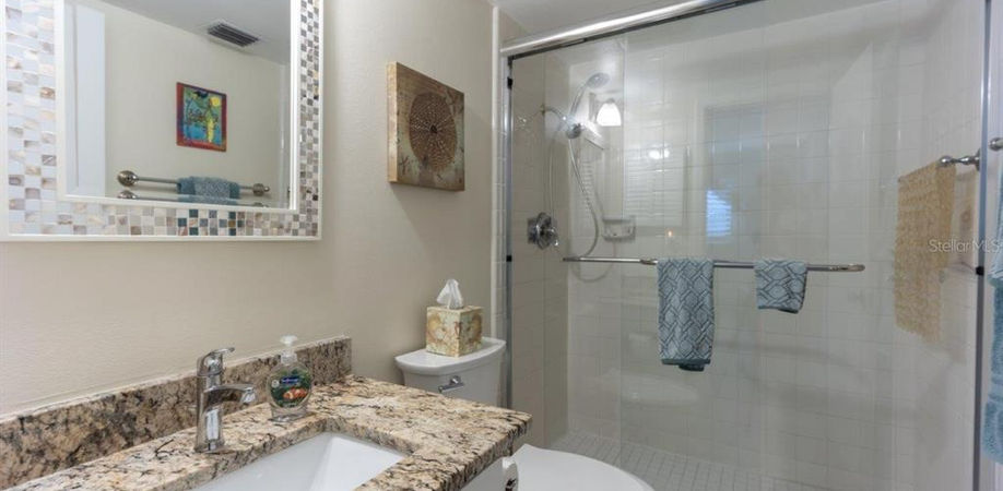 When you walk into Starfish 11 your eyes are drawn through the unit out onto the Lanai through the lush tropical landscape down to the blue green colors of the Gulf of Mexico. This fully furnished unit has a beach vacation vibe and has established renters if you would like to rent or use as your vacation rental. Den and kitchen along with bathrooms have been updated with Quartz countertops. AC unit has been maintained every 6 months. This unit also has brand new sliders with "turtle glass "and a brand new water heater. Solid wood shutters are on all windows. Starfish building is one of the few that when you look out your front door you see lush tropical landscaping and no parking lot. Walking distance to Broadway street where you have Whitney's, Mar Vista, and the Shore restaurants. This is an end unit which gives you more light than the inside units. Whether you are enjoying sunsets and cocktails on your Lanai or on the beach, Starfish 11 is the place to be. Don't let this one get away!!