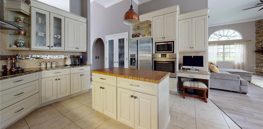 Welcome home to this stunning, custom built home on ½ acre lot in the gated community of Hidden Lakes Club. Located a short distance from the gulf beaches and interstate, this home has it all! Your first step in you are immediately greeted with an abundance of light through the French sliders that lead to the pool and lanai area. The recently renovated kitchen boasts granite counters, stainless appliances, a catchy backsplash, attractive cabinetry, and butcher block island that is a chef’s dream. The open feel of the kitchen to the living room lends to entertaining and dining with friends and family, and enjoying time in the Winter beside the gas fireplace. The substantial master suite is warm and welcoming with its high arched windows, French sliders with access to the pool and lanai area, double vanities in the bathroom, separate shower and garden tub to relax in after a long day. As you make your way out to the lanai, you will certainly want to jump right into the large pool and soak up some Florida rays, or melt your cares away in the hot tub big enough for 6. Main drain lines under the house were replaced in 2020. 5 ton A/C was replaced in 2015. Call today and make your appointment to see this one before it's gone.