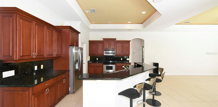 Rarely available and move in ready home in the private and gated community The Hammocks. Walk in the front door and notice the all the brightness and light through the sliders throughout the main living areas of the home . Straight ahead is the Living Room to the left is the dining room. Walking to the right is the office and the master suite. Spacious walk in closet, his and her vanities, corner tub and a large walk in shower. The upscale kitchen features cherry cabinets and granite countertops open to the Family room and the breakfast nook to the right. Custom Built in for your television and surround sound in the Family room. In the back of the home is the Bonus/4th bedroom with its private bathroom and closet. Left of the kitchen are two other guest bedrooms and the third guest bath. Enjoy the lake view and oak tree in the backyard while you are grilling in the outdoor kitchen by the pool. All room sizes are approximate. The dining room table set and the pool table can be purchased.