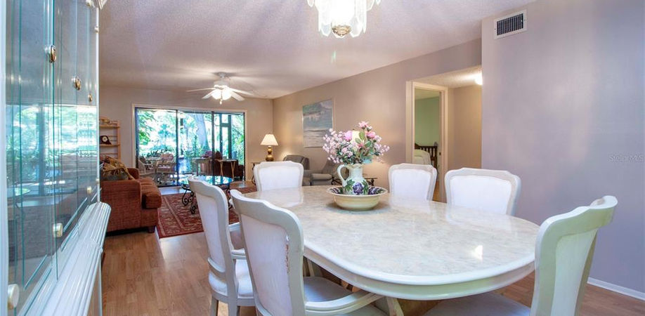 Absolutely BEAUTIFUL condo unit! Convenient first floor unit in the lovely original Neal Community of Wild Oak Bay. This two BR/ two Bath unit is nestled among the beautiful Florida foliage with a view of a community pond and amazing Community Pool/Spa Amenities. For your convenience, this open plan unit is being sold FULLY FURNISHED!! Move in ready, this home has been recently painted, (2021) NEWER Air Conditioner (2019), NEWER Hot Water Heater (2019), NEWER Dishwasher & Disposal and flooring has been updated, as well. There is NO CARPET in this home. Large Closets throughout for ample storage capabilities. Front and Back Lanais have been enclosed to make them comfortable all year long. Lots of natural light fill the unit from the triple glass sliders overlooking the community amenities. Updated Bathroom Fixtures & Vanities add a flair to this lovely living space. Convenient built in desk area in the kitchen and front lanai has a wonderful built in Dry Bar area perfect for entertaining! Second Bedroom comes complete with a Murphy Bed Setup for your convenience.