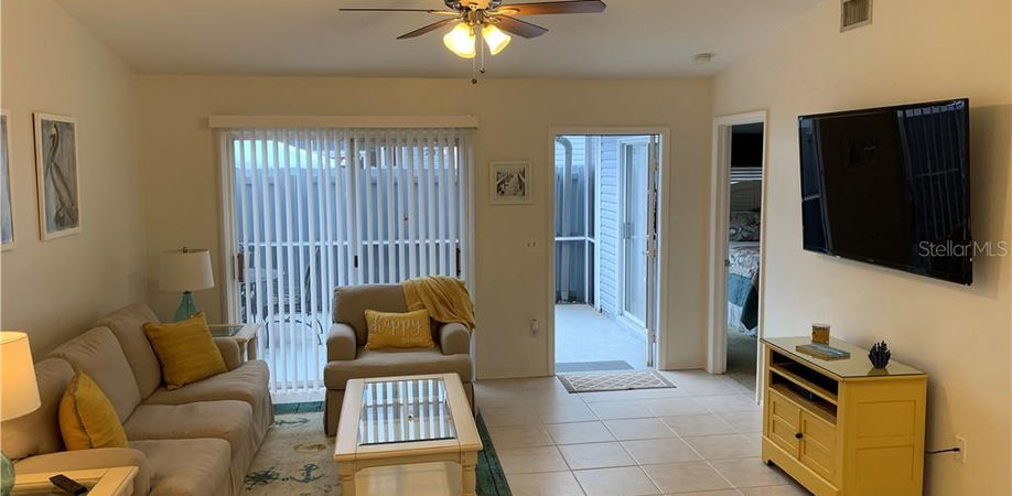 Totally furnished seasonal, TV's in each room. "Cabel and WiFi" each room. "Electric included". Large Washer/Dryer. Towels/Fully Equipped Kitchen, Kureg Deluxe Maker, King bed in master with private bath, guest room with twin beds, each bedroom have huge walk in closets, dining table and 4 chairs, 2 counter stools, ceiling fans in each room, Outside large Lanai (not roofed) all screened, very Private.