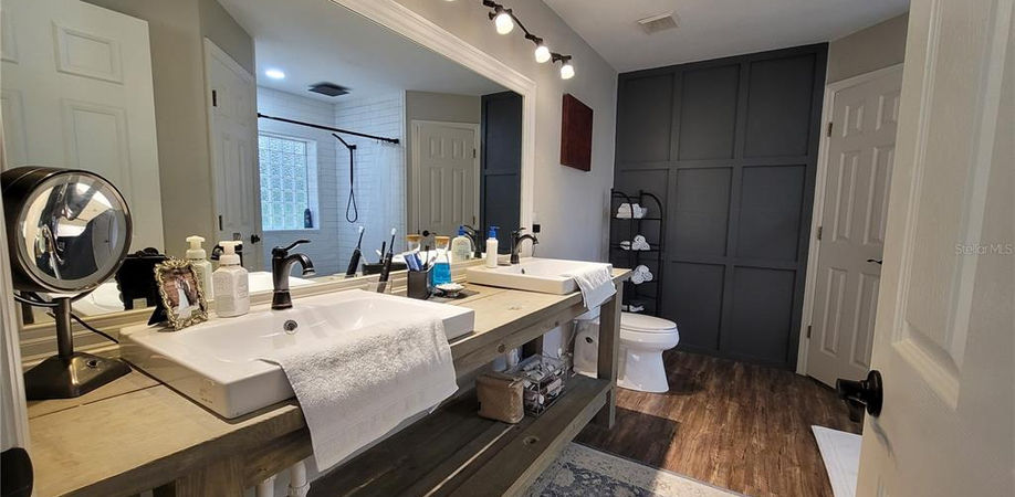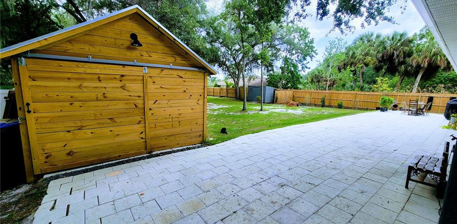 If size and quality are your things then check out this hard-to-find and perfectly sized 4 BEDROOM HOME PLUS A DEN and formal dining room situated on a TRIPLE LOT(0.70 acres) tucked away amongst the Florida oaks in North Port! The 2 additional adjacent parcels allow for an enormous amount of possibilities and access points. Enjoy your own little piece of Florida paradise from the massive covered rear lanai or the even more massive 1200 sq.ft. rear brick paved patio! The shed was just installed and has electricity! The home's tastefully appointed interior has been entirely redone within the last 5 years including newer wood-look laminate flooring throughout, fans, lights, paints, etc. along with a recently upgraded kitchen and both bathrooms. The kitchen upgrades include the staggered glass door/interior lit upper cabinets accentuated by solid shaker-style bases along with newer stainless steel appliances. The Master bath includes a recently redone multil head rain shower, a modern farmhouse style 'his and hers' vanity along with dual walk-in closets and the guest bathroom has been equally updated. Don't miss out on this one of a kind 4 bedroom plus den triple lot find in North Port with access to public water! Make an offer today!