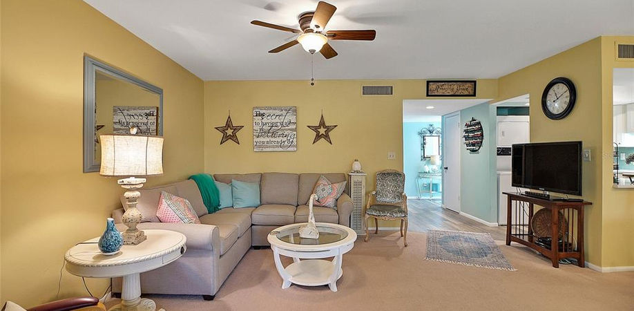 BEAUTIFUL UPSTAIRS CONDO WITH AWESOME WATER AND NATURE VIEWS RIGHT OFF YOUR BALCONY, THE BEST VIEWS ON THIS QUIET COMMUNITY OF LIVE OAK VILLAGE! This 2 bedroom 1 full bath 1 half bath (Jack & Jill Bath) condo is in a 55+ Community. Each bedroom is large enough to comfortably fit a king sized bed, tons of closet space. Freshly painted. The Kitchen has been fully remodeled with SOFT CLOSE CABINETS, beautiful subway tile, Quartz Countertops, vinyl plank flooring, and stainless steel appliances. Both Bathrooms have stone countertops. Water Heater and HVAC are newer and this home comes with a HOME WARRANTY! The enclosed lanai has vinyl plank flooring, glass windows, and gorgeous water views! Beautiful oak trees line the streets, making for a very aesthetic stroll or bike ride. The street lights at night keep the area well lit. Live Oak is located at the end of Midway Road. The only traffic is residents and their guests. The grounds are impeccably maintained by the condo association. Amenities include swimming pool, outside pest control, exterior maintenance including painting, pressure washing, trash pickup, common area maintenance and basic cable is included. If you are looking for a move in ready condo, with the most bang for your buck on condo fees, you just found it. Call today for a private showing!